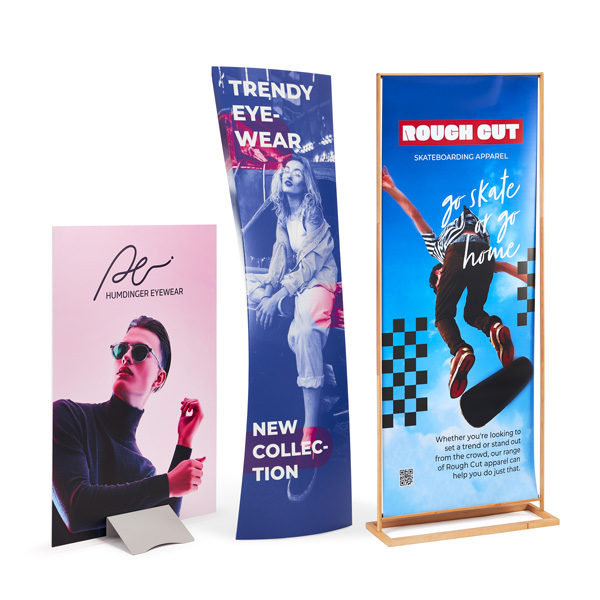 Diese Displays sind in verschiedenen Formaten erhältlich und sorgen für eine eindrucksvolle Werbebotschaft. Durch das besonders große Format und die äußerst hochwertige Druckqualität fallen Sie bei allen Anlässen und geschäftlichen Events garantiert auf!
